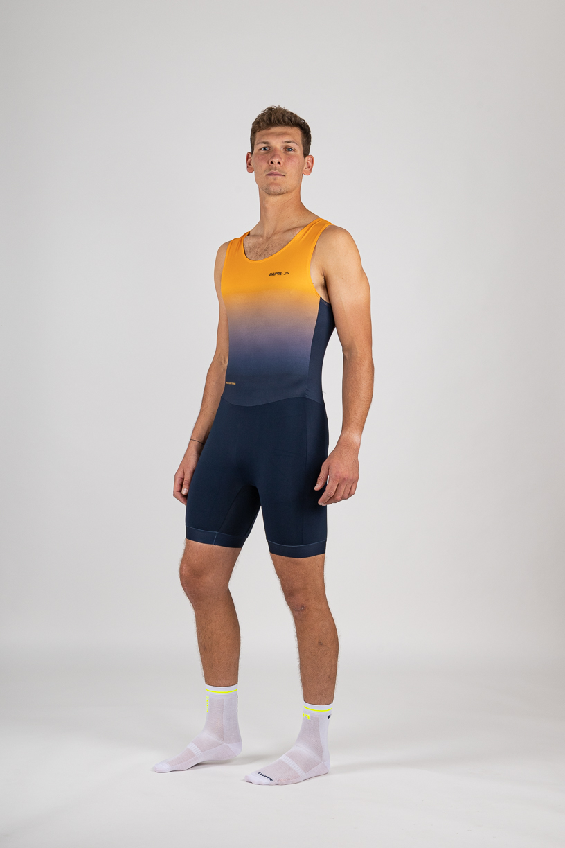Our Pro Unisuits are made from quick-drying, lightweight, and highly elastic Lycra and polyester fabrics that guarantee optimal mobility at any speed. The seamless construction with double fabric layers in the seat area ensures comfortable wear. The reinforced fabric on the back and front of the bottom is dyed and particularly abrasion-resistant, ensuring that the one-piece suit retains its shape for a long time. The mesh side panels on both sides of the top provide efficient ventilation and rapid cooling. Elastic leg cuffs with silicone grippers on the inside ensure a secure, non-slip fit.