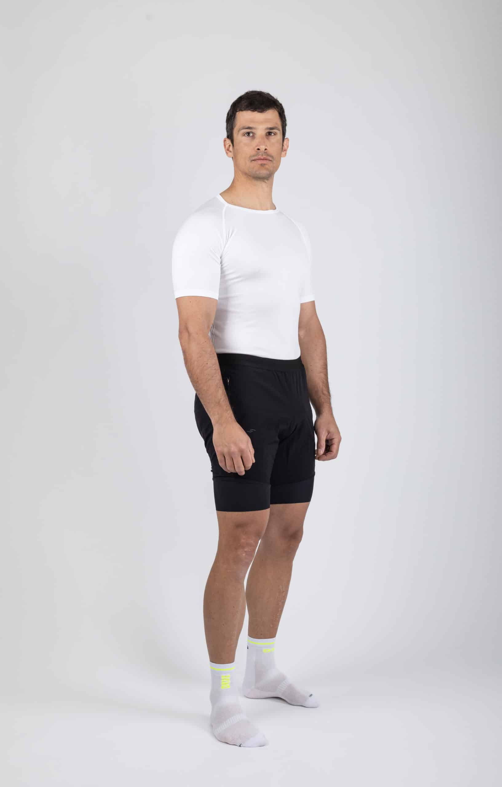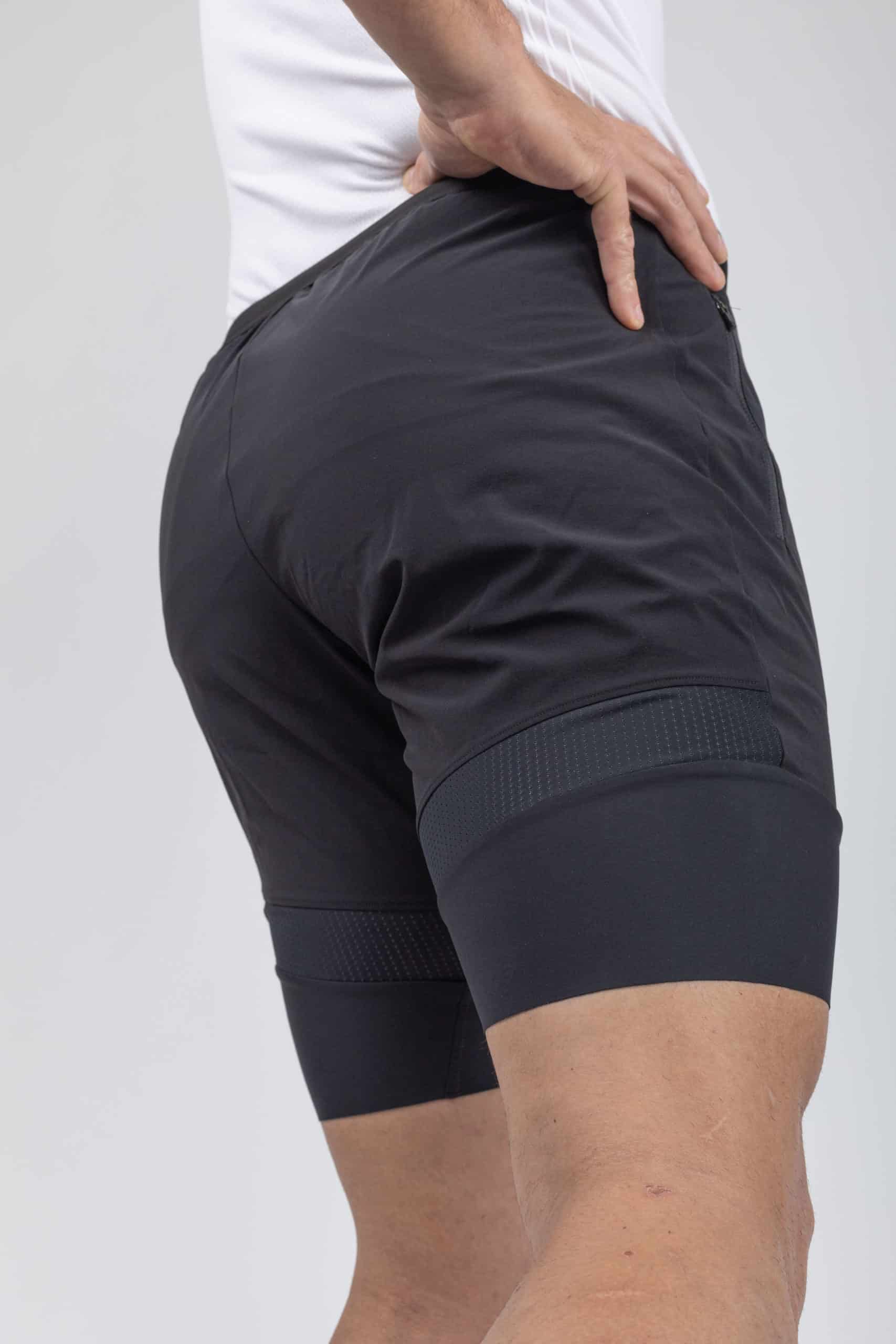 Der innovative Materialmix kombiniert die Funktionalität von Tights mit dem Look einer Trainingshose: Eine robuste, wasserabweisende Außenhaut sorgt für Strapazierfähigkeit, während der elastische Stoff jede Bewegung von der Auslage bis zum Endzug unterstützt. Praktische Details wie eine Reißverschlusstasche rechts für Smartphone oder Tools sowie ein verstecktes Schlüsselfach auf der Innenseite machen die Shorts besonders alltagstauglich.