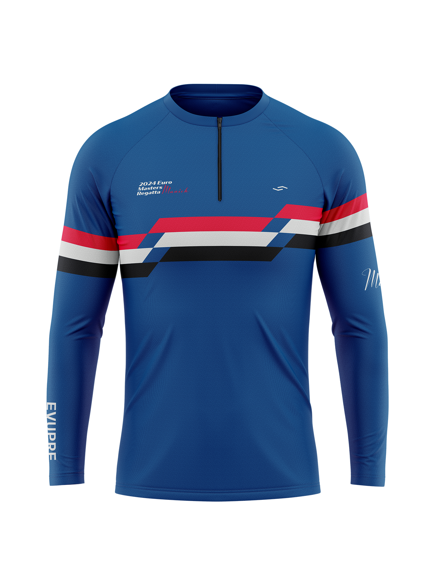 Das marineblaue Design wird durch einen naturweißen Seitenstreifen akzentuiert, auf dem die französischen Starterkommandos „Êtes-vous prêts?” und „Partez!” stehen – eine stilvolle Hommage an die internationale Ruderszene.