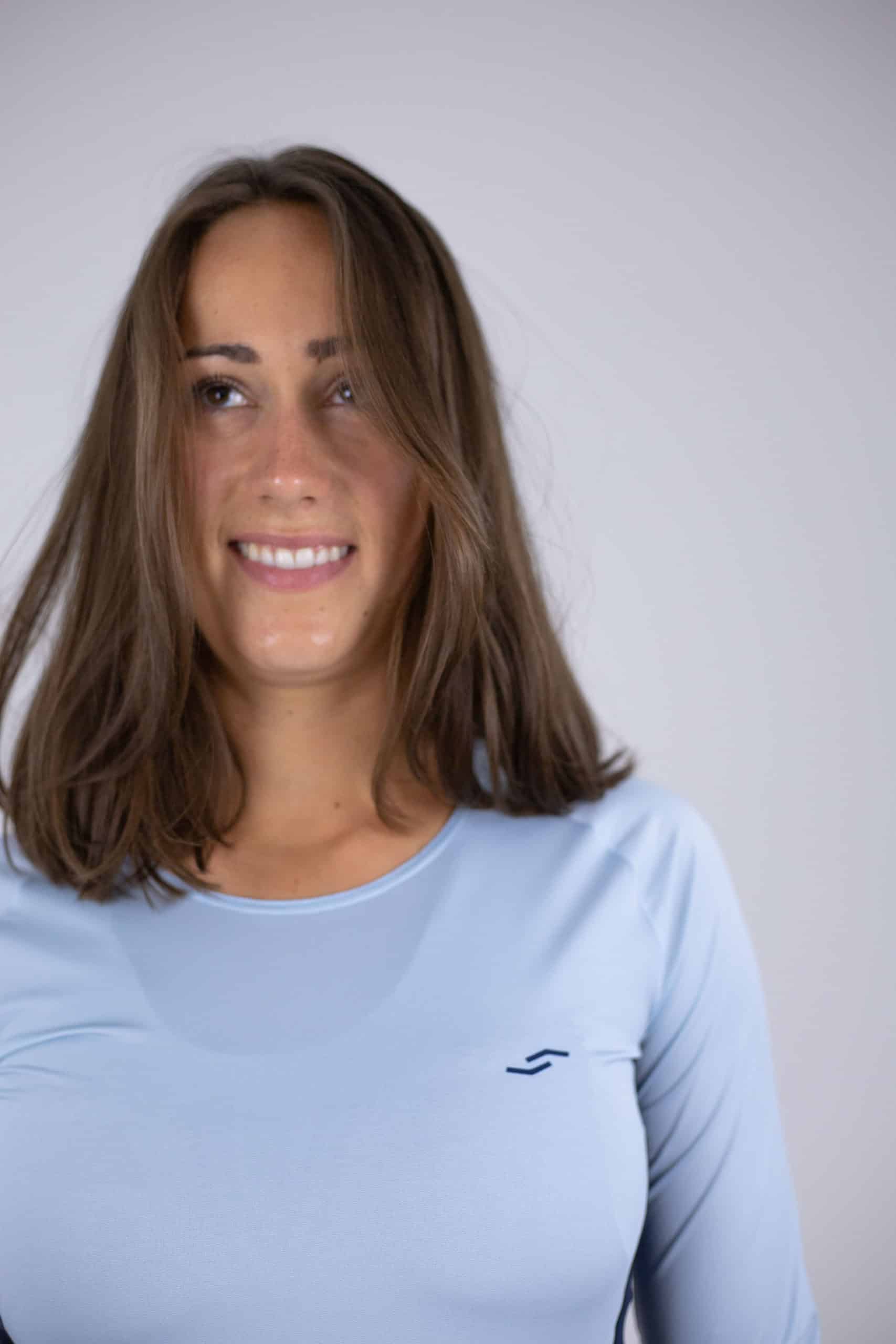Model Elisabeth ist 170 cm groß und trägt Größe M. Das Longsleeve Shirt gibt es in Regular Fit mit leichter Taillierung. Schöne Flachnähte sorgen für hohen Tragekomfort sowie für eine elegante und sportliche Optik. Das Rückenteil ist um 3 cm länger geschnitten, um den unteren Rücken auch in gestreckter Auslageposition zu schützen.