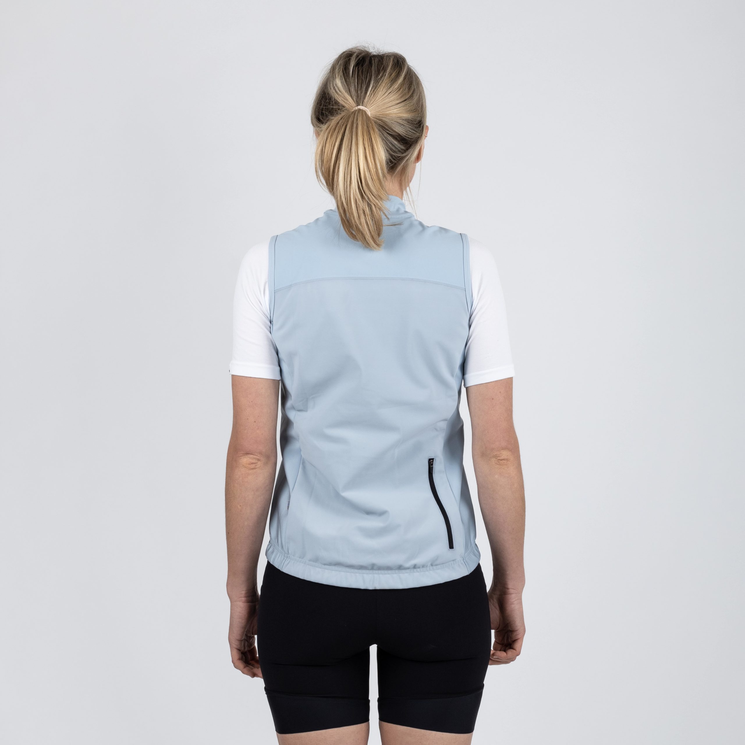 The vest is built in multiple layers: the coated outer shell protects against wind and repels water, while the soft inner lining of wool and polyester provides comfortable wear. Elastane adds stretch and mobility, and a silicone strip at the hem prevents the vest from riding up.