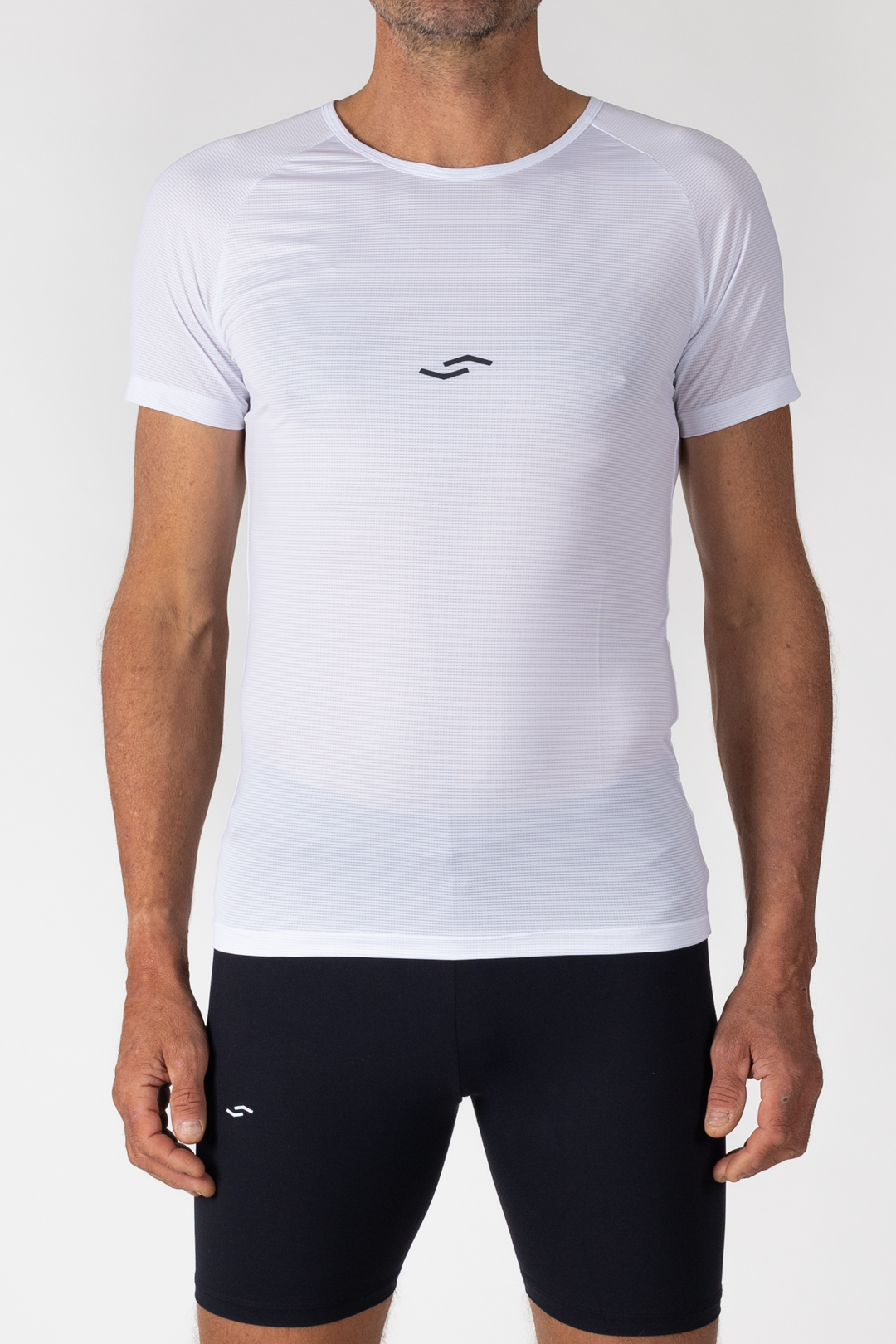 Der schnelltrocknende, leichte Mesh-Stoff garantiert maximale Belüftung und uneingeschränkte Beweglichkeit bei jedem Tempo. Das luftige Material sorgt für optimale Kühlung bei warmen Temperaturen und bleibt atmungsaktiv. Der Slim fit Schnitt liegt körpernah an und eignet sich perfekt als Unterzieher unter dem Einteiler oder als eigenständiges Trainingsoberteil für warme Tage.